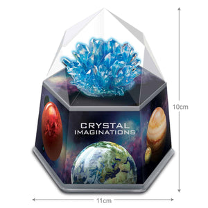 ערכת ניסוי לגידול גביש כחול דמוי אבן חן חללית. כוללת את כל הדרוש לגידול גביש מרהיב בבית: תמיסת גבישים, מיכל גידול, תבנית ודף הוראות. חלק מסדרת ניסויים מדעיים שמעודדת עניין בכימיה ובמדעים.