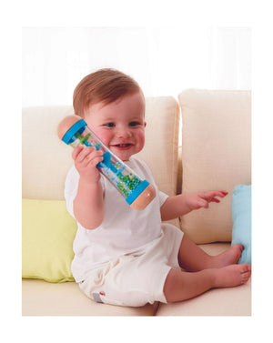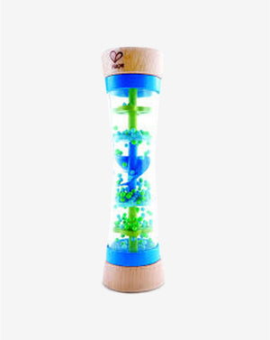 מקל חרוזים בצבע אדום מעץ המשמיע קולות גשם בכת הפיכתו מצד לצד. מגיל 0