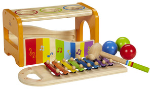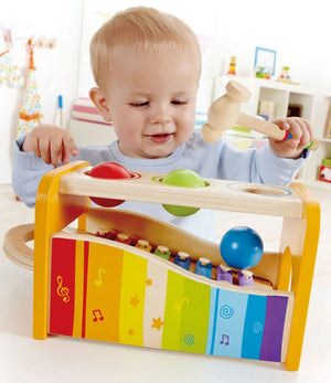 הכירו את משחק הפטיש-קסילופון התפתחותי של HAPE – שילוב מושלם בין כיף ולמידה! המשחק מעוצב בצורה צבעונית וכדורית, עשוי מעץ איכותי ועמיד. באמצעות הפטיש, הילדים יכולים להכות בכדורים המתגלגלים וליהנות מניגון עליז על הקסילופון המצורף. יתרון נוסף – הקסילופון ניתן לניתוק ולהשתמש בו בנפרד, מה שמאפשר יצירתיות וגמישות במשחק.
