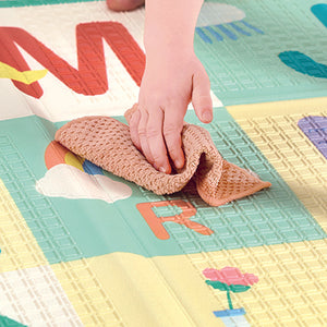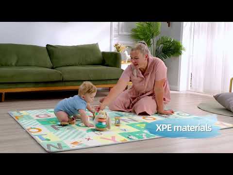 משטח הפעילות המושלם לתינוקות ופעוטות. המשטח נח, בטוח, ומציע אזור גדול ופתוח לתינוקך להתגלגל עליו לבד או לשחק עם הצעצועים שלו. למחצלת יש את אותיות האלפבית בצד אחד וסולם מדידה בצד השני כדי שניתן יהיה למדוד את גודל התינוק שלכם. משטח הפעילות גדול מספיק לצעצועים אחרים לשחק איתם. הוא עמיד למים וניתן להסיר בקלות כתמים ולכלוך.