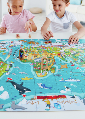 פאזל מושלם של מפת העולם מבית HAPE! לאחר שתרכיבו תעבדו קצת על אבחנה חזותית!
