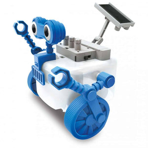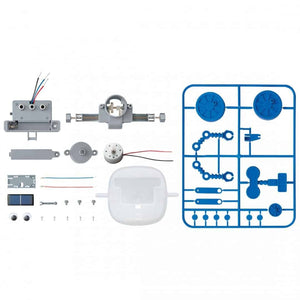 תכולה: 1 X גוף, 1 X תבת הילוכים, 1 X גלגל אחורי, 6 X פקקי מחבר, 2 X ארכובה, 1 X תמיכת עיניים, 1 X זרוע שמאל, 1 X זרוע ימין, 2 X גלגל גדול, 1 X מחזיק סוללה, 1 X מחזיק לוח סולארי, 1 X מנוע, 1 X כיסוי סוללה, 1 X לוח סולארי, 1 X זרוע תומכת ללוח הסולארי, 1 X כיסוי מנוע, 1 X זוג כבלים, 2 X עיניים, 5 X ברגים, 3 X מכסי הדק. פריטים דרושים שאינם כלולים בערכה זו: מברג פיליפס קטן, סוללת1.5V AAA .