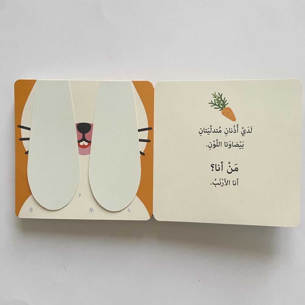يعتمد الكتاب على قدرة الطفل في معرفة اسم الحيوان من خلال الوصف ومن ثم اكتشاف الإجابة ووجوه الحيوانات المختبئة خلف أطرافها.